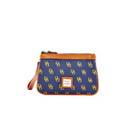 Gretta Signature Medium Wristlet The Gretta Signature Collection is branding at it's best. A petite logo print covers coated cotton fabric cast in classic shapes finished with fine Vacchetta leather trim. Detachable strap. Lined. Zipper closure. Coated cotton fabric. L 5.75 in. W .25 in. H 3.75 in. Color: Navy with Tan trim ... View Details » |