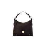 Pebble Grain Hobo The Pebble Grain Collection is renowned for the rich texture and exceptional durability of it leather. Featuring a relaxed, slouchy crescent-shaped construction, this shoulder bag is the epitome of casual, fashionable style. One inside zip pocket. Two inside pockets. Cell phone pocket. Inside key hook. Strap drop length 8 in. Lined. Zipper closure. Measures L 13.5 in. W 4.5 in. H 9 in. Color: Black w Black Trim ... View Details » |