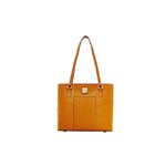 Saffiano Small Lexington Shopper Crisp clean lines of timeless design catches the eye first. A stunning array of rich hues lures one further. Then, the delicate Saffiano texture coupled with contrasting russet leather trim, off-white topstitching, and simple gold tone hardware completes this perfect mixture of tailored, subtle beauty. Two inside pockets. One inside pocket. Cell phone pocket. Inside key hook. Strap drop length: 10.75 in. Front and back slip pockets. Lined. Feet. Zipper closure. L 11.75 in. W 3.5 in. H 10.5 in. ... View Details » |