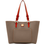 Wakefield Tassel Tote Crafted in Dooney and Bourke's signature pebble leather, this softly structure tote is detailed with contrasting Vacchetta leather trim and finished with a tassel tie. Features include three inside slip pockets, cell phone pocket, inside key hook, line, adjustable, detachable strap. Strap drop length 26 inches. Handle drop length 4.5 inches. Measures H 9 in x W 12 in x D 5 in. Color: Oyster ... View Details » |