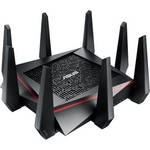 RT-AC5300 Tri-Band Wireless AC5300 Gigabit Router With built-in tri-band functionality, the RT-AC5300 Tri-Band Wireless AC5300 Gigabit Router from ASUS allows users to connect to one 2.4 GHz frequency and two separate 5 GHz frequencies. With two 5 GHz operating frequencies this router can support more users without sacrificing bandwidth or network performance. Along with tri-band connectivity, the RT-AC5300 supports the enhanced 802.11ac netwo ... View Details » |