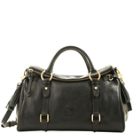 Florentine Satchel Dooney's Florentine Collection combines a cool, laid back sense of style with elements of classic sophistication, for an effortless look that is timeless and very chic. Red cotton lining edged in green suede. Double handles with 4.5 in. drop. Fold-over zipper closure. Lined with Feet. One inside zip pocket. Two inside pockets. Cell phone pocket. Detachable strap drop: 18 in. L 15 in. W 6.5 in. H 9.5 in. Color: Black Black trim ... View Details » |
