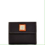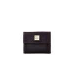 Pebble Grain Small Flap Credit Card Wallet The Pebble Leather Collection blends the essential functionality with a distinct classic style. A beautiful, classic credit card wallet in rich, supple, softly pebbled leather. Outside zip pocket. One bill compartment. Four inside pockets. Six credit card slots. Snap closure. L 4.5 W .75 in. H 3.75 in. Color: Black with Tan trim ... View Details » |