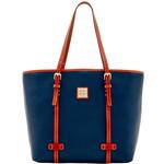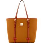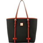 Pebble Grain East West Shopper This longstanding collection is one of Dooney's most popular. The pebble grained leather has a distinctive texture that holds up beautifully to everyday wear and tear. We use it to create updated classics in a wide array of colors with contrasting bridle leather trim. The result is a collection of accessories that are loved and carried from one season to the next. Two inside pockets. Inside zip pocket. Cell phone pocket. Inside key hook. Adjustable Handle. Handle drop length 9 in. Lined. Magneti ... View Details » |
