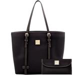 Pebble Grain East West Shopper and Tech Top Zip Pouch It's easy to be prepared thanks to the Pebble Grain East West Shopper and Tech Top Zip Pouch Set! You'll love the contrasting shoulder straps with adjustable buckle accents on the Shopper that give this structured piece a modern look. Features of the Shopper include two adjustable handles, magnetic snap closure, metal-plated logo, four bottom feet, Dooney's signature red lining, and plenty of pockets to help keep things organized. Plus, there's plenty of space inside so you can tote your essenti ... View Details » |