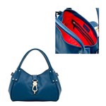 Belvedere Medium Logo Lock Satchel Unstructured shapes and tumbled, pebbled leather give a visual and tactile softness to this modern, compact satchel. A refined, jewel-inspired lock adorns this design, while keeping your essentials secureârefined style. Features include double handles, logo lock closure, adjustable side buckles, four bottom feet, goldtone hardware, inside slip pocket, cell phone pocket, one inside zip pocket, and an internal key hook. 7.5 inch handle drop. Measures H 8 in x W 13 in x D 6 in. Color: Midnight ... View Details » |