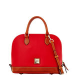 Pebble Grain Zip Zip Satchel The Pebble Leather Collection blends the essential functionality with a distinct classic style. A beautiful satchel in rich, supple, softly pebbled leather. Two inside pockets. One inside zip pocket. Cell phone pocket. Inside key hook. Handle drop length: 4 in. Strap drop length: 15.5 in. Lined. Feet. Zipper closure. L 12.75 in. W 5 in. H 10 in. Color: Red ... View Details » |