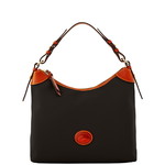 Nylon Crossbody Dooney's Nylon Collection items are lightweight and extremely durable. A more substantial weave provides the extra reinforcement that allows this collection to better maintain profile. High impact hues, shiny gold tone hardware and russet leather trim make this collection the perfect carryall for everyday. One inside zip pocket. Two inside pockets. Cell phone pocket. Adjustable strap. Strap drop length: 25 in. Zipper closure. Measures L 10.5 in. W 4 in. H 10.25 in. Color: Black w Russet Trim ... View Details » |