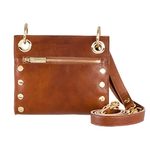 Tony Crossbody Cognac/Gold Perfect âitâ bag to throw on the go with all your necessitiesOne main zipper compartmentPebbled leather with gold-tone rivet detailingBold accented red zipperRed cotton twill liningExterior features a cell phone pocketInterior provides a credit card slotCrossbody strap measures 52â longDimensions: 8âL x 2âW x 7.5âH ... View Details » |