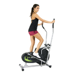 2-in-1 Cardio Dual Trainer 2-in-1 Elliptical motion design technologyUse as both an elliptical trainer and exercise bikeMagnetic tension controlAdjustable resistanceProgrammable exercise console features over 21 training programsIntegrated hand pulse and hear rate monitorDual handlebars for different workoutsGel-style seat that adjusts horizontally and verticallyPass-through frame designMotor drive with AC adaptor included ... View Details » |