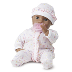 Melissa & Doug Mine to Love Gabrielle - 12" Doll This adorable baby doll is just the right size to hug and cuddle. Gabrielle has molded plastic hair and her beautiful brown eyes open and close! She loves to be held and can also sit up "like a big girl." Her pretty frilled clothing features hearts and flowers and is removable for dressing and undressing fun, and she can suck her thumb or the included pink pacifier. Doll is 12" tall.SpecificationsAssemblyAssembly Required: No ... View Details » |