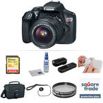 EOS Rebel T6 DSLR Camera with 18-55mm Lens Deluxe Kit Comprising the essential components needed to begin shooting, the Canon EOS Rebel T6 DSLR Camera with 18-55mm Lens Deluxe Kit from B&H bundles the versatile camera body and zoom lens with a 32GB SDHC memory card, lens cap holder, 58mm UV and circular polarizer filters, a wireless remote shutter release, and a shoulder bag. Additionally, an extended two-year drops and spills warranty is also inc ... View Details » |