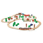 Eichhorn 81 Piece Wooden Train Set with Bridge Once you put your Eichhorn Wooden Train Set together the fun can begin. This Eichhorn Train Set with Bridge has 81 pieces with over 13 feet of track. The set consists of track, wavy track, points, figures, signs, trees, a station, houses, cars, a level crossing and a 5-piece train. For the manufacture of Eichhorn train sets, only FSC certified wood from sustainable forestry is used. Suitable for children from 3 years and over. Train cars connect with strong magnets. 100 percent Beechwood. T ... View Details » |
