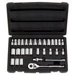 20pc Socket Set Eighteen 1/4" Dr. SocketsOne 1/4" Dr. Extension Bar - 3"One 1/4" RatchetBlow Molded Carry CaseLifetime Warranty ... View Details » |
