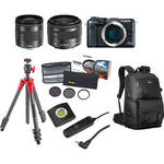 Alpha a6000 Mirrorless Digital Camera with 16-50mm and 55-210mm Lenses Deluxe Kit (Black) Comprising an apt camera body, a pair of lenses, and accessories to help you begin shooting, the black Sony Alpha a6000 Mirrorless Digital Camera with 16-50mm and 55-210mm Lenses Deluxe Kit from B&H bundles the camera, standard zoom lens, and telephoto zoom lens with a memory card, a spare rechargeable lithium-ion battery, an external battery charger, a 49mm UV protector filter, and a shoulder ... View Details » |