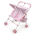 Badger Basket Folding Double Doll Umbrella Stroller - Pink/Gingham Badger Basket’s Folding Double Doll Umbrella Stroller is an ideal, compact stroller when your doll wants to bring along her brother or a friend! Favorite stuffed animals will want a ride, too! No assembly is needed and it folds flat and unfolds quickly. Handy storage baskets keep doll clothes and accessories organized for any pretend outing. The baskets have mesh sides so your child can quickly spot a necessary item buried at the bottom. Features four sets of smooth-rolling, dual wheels fo ... View Details » |