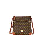 Gretta Signature Crossbody Petite logos provide a subtle pattern on this coated canvas collection with leather trim. The slim, hands-free crossbody is also a fan favorite. With just enough space for essentials, it's the ideal companion for weekend errands or happy hour with friends. One outside zip pocket. One inside zip pocket. Two inside pockets. Cell phone pocket. Inside key hook. Adjustable strap. Strap drop length: 22 in. Lined. Zipper closure. H 10.25 in. W 4 in. L 10.5 in. Color: Brown Tmoro ... View Details » |