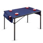 Picnic Time Travel Table Picnic Time's Travel Table is a portable, soft-top table for four that features six cup holders and two zippered security pockets to hold personal effects. The Travel Table comes equipped with matching drawstring carry bag. Made of 600D polyester with a powder-coated steel frame, this table is perfect for tailgating, camping, or card games.Powder-coated steel frameDurable polyester table topFour sunken cup holders in the table top, one on each sideOne beverage ... View Details » |