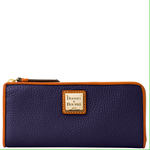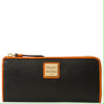 The Pebble Leather Collection blends the essential functionality with a distinct classic style. A beautiful, classic clutch in rich, supple, softly pebbled leather. Two compartments. One zip compartment. Eight credit card slots. Lined. L 7.5 in. W 1 in. H 3.5 in.