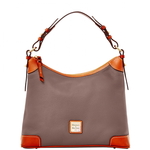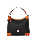 The Pebble Leather Collection blends the essential functionality with a distinct classic style. A beautiful, classic hobo in rich, supple, softly pebbled leather. One inside zip pocket. Two inside pockets. Cell phone pocket. Inside key hook. Strap drop length 8 in. Lined. Zipper closure. Measures L 13.5 in. W 4.5 in. H 9 in.