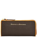 Clean lines and beautiful leather define the Claremont Collection. Made of specially tanned European hides, the leather has rich color, subtle texture and a durable coated finish. Two inside compartments. One inside zip compartment. Eight credit card slots. Lined. Zipper closure. Measures H 3.75 in. W 1 in. L 7.75 in.
