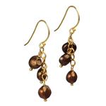 Lita Gold Plated Sterling Silver Champagne Pearl With Rectangular Shell Drop Earrings