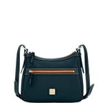 The Dooney and Bourke Pebble Grain Piper is a sassy yet refined everyday leather bag. It is the perfect size to hold all your essentials and has enough pockets to help keep your items organized. It includes a front zip pocket for easy access and a top zip closure to keep all items secure. The interior has an inside zip pocket, two inside pockets, a cell phone pocket, and an inside key hook. Strap drop length: 23.5 inches. Measures L 11.5 in. x W 4 in. x H 8.25 in.