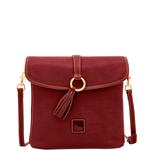 With a polished gold ring, classic tassel and a signature embossed logo, this flap crossbody was designed with an all-American, preppy spirit. Interior storage pockets keep you organized and Florentine Italian leather offers a smooth, luxurious foundation. Features include two inside pockets, one inside zip pocket, cell phone pocket, inside key hook, top flap closure, and an adjustable strap. Strap drop length 22.5 inches. Measures H 10 in x W 10.25 in x D 4.25 in.