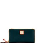 The rich texture and exceptional durability of Dooney's pebble grain leather make it a perfect match for this phone wristlet. With organized space for a cell phone, cash and cards, it is a stylish accessory for a woman on the go. Features include two compartments, one zip compartment, twelve credit card slots, lined, and has a detachable strap. Measures H 4.5 in x W 8.25 in x D 1 in.