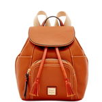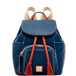 One outside zip pocket. Two outside pockets. Inside zip pocket. Cell phone pocket. Inside key hook. Lined. Magnetic snap and drawstring closure. Measures H 10.5 in x W 6.5 in x L 9 in